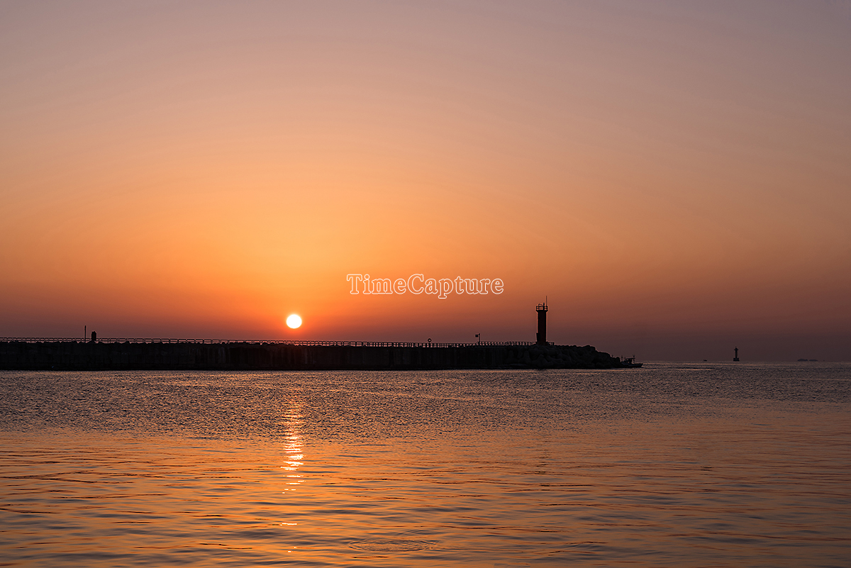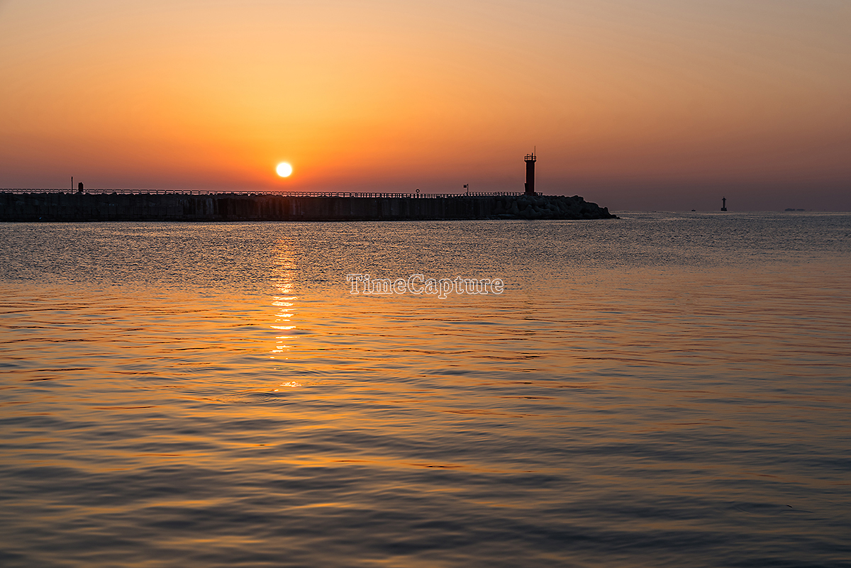강원도,강릉시,사천면,서천진리,항구,방파제,등대,수평선,태양