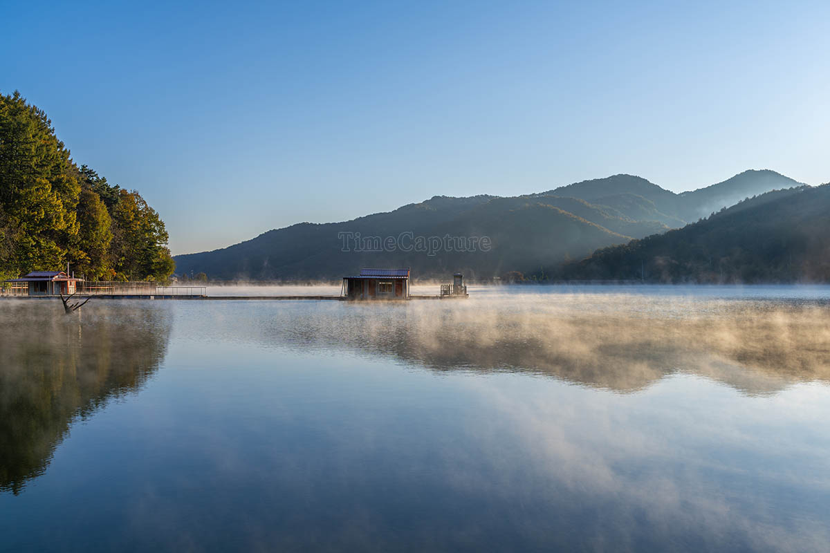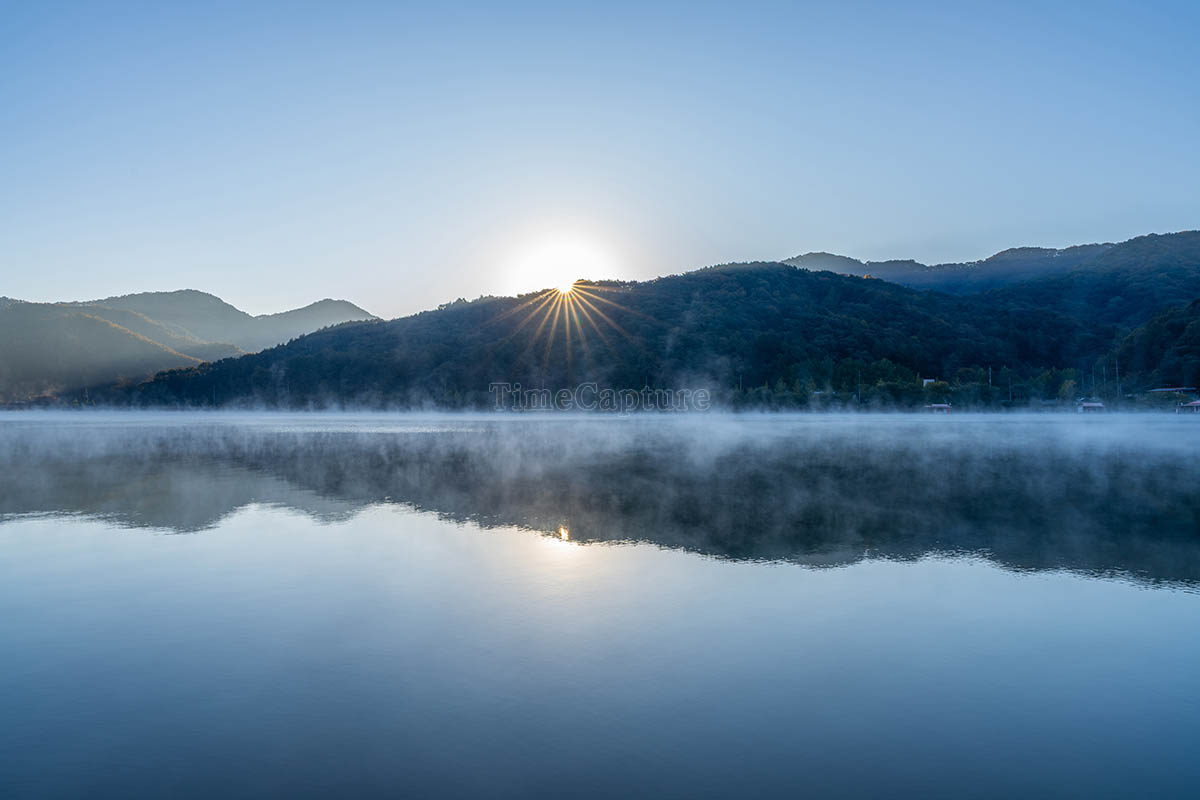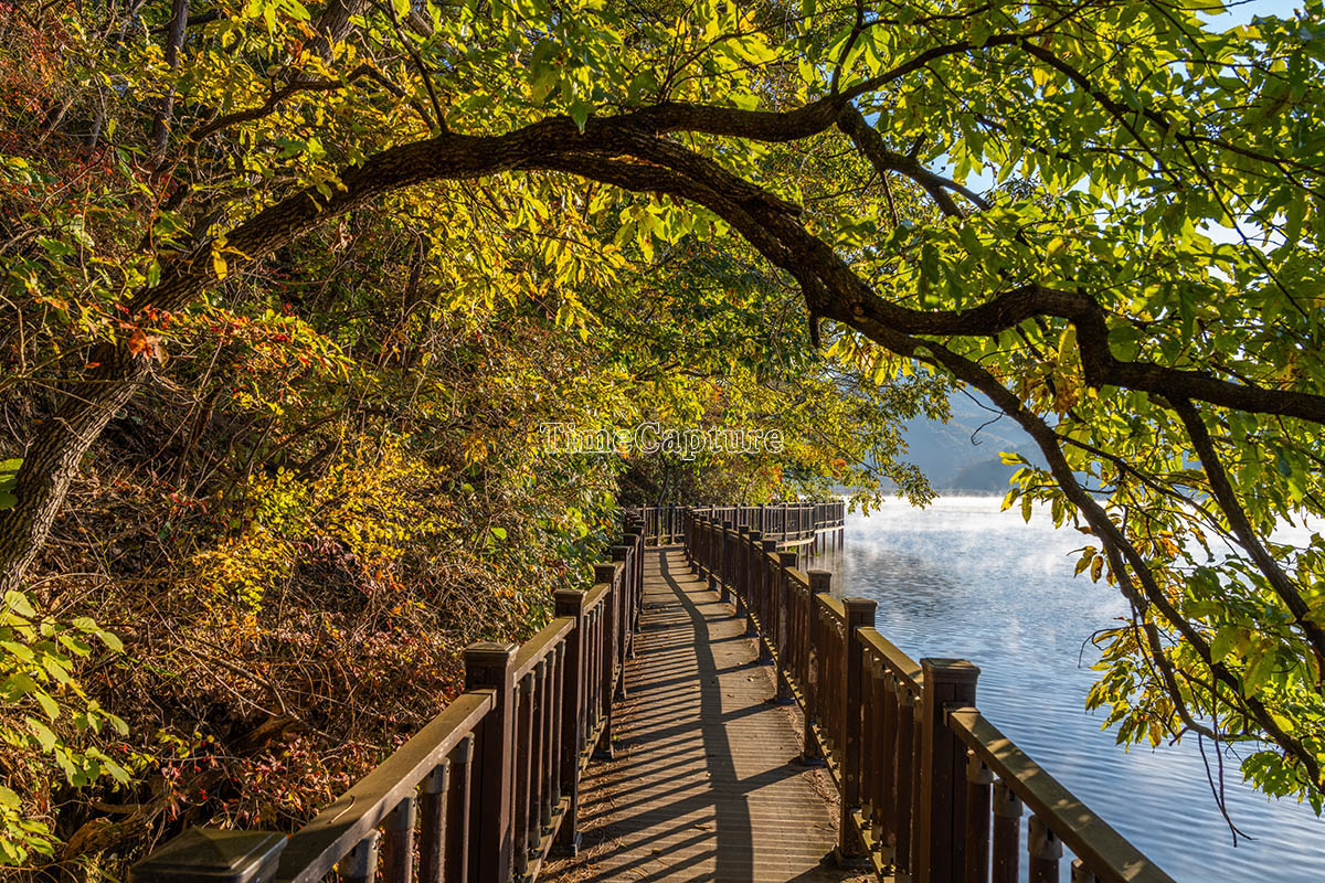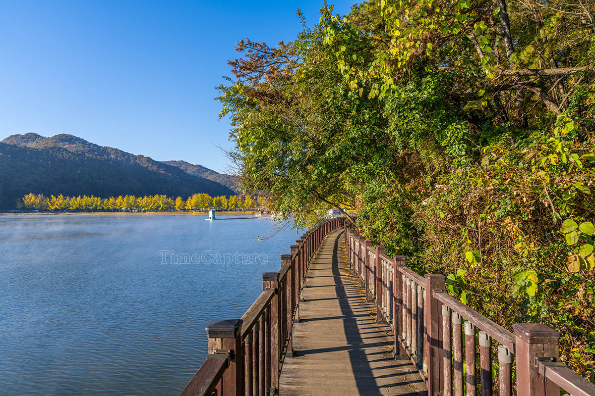 충청북도, 충북, 일출, 물안개, 산책로, 태양, 가을, 단풍, 은행나무